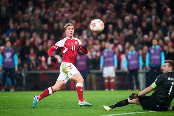 一年前,拉斯穆斯·赫伊伦(Rasmus Højlund)在丹麦足坛只能说是小有名气,他是U19国家队队长,在只有150名观众的球场输给了奥地利。3月23日,他站到了哥本哈根公园球场的大舞台上,成为第一个在这块场地举行的预选赛上演帽子戏法的丹麦人,帮助球队在欧预赛首战3比1击败芬兰。